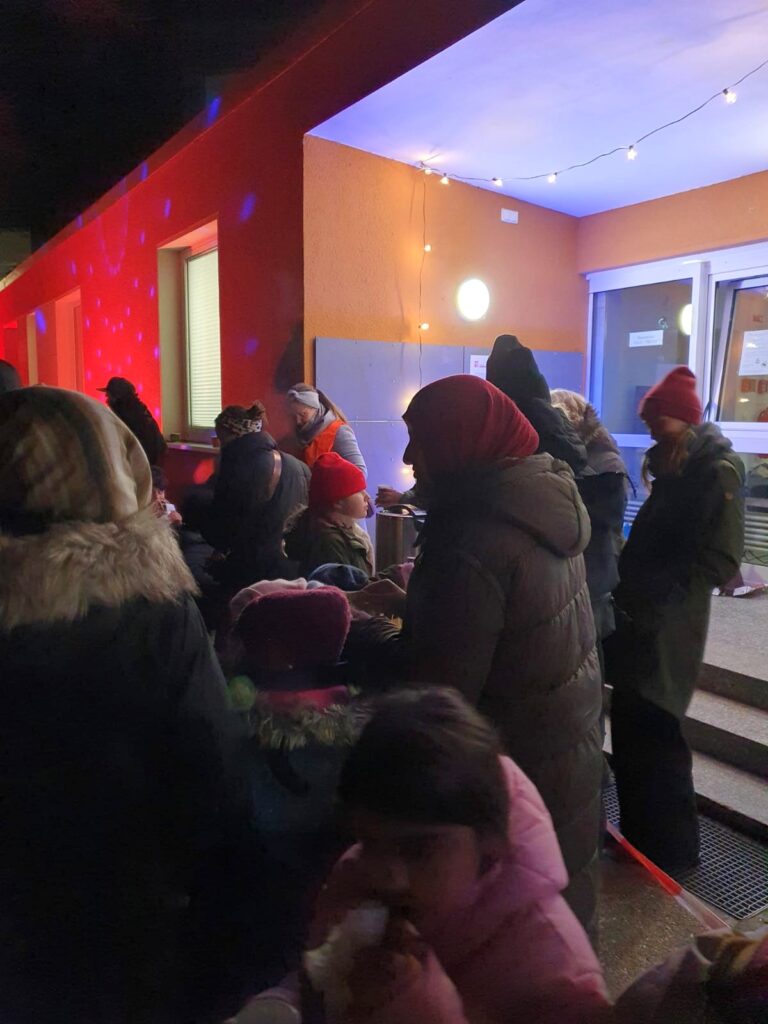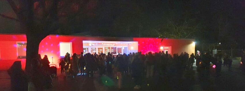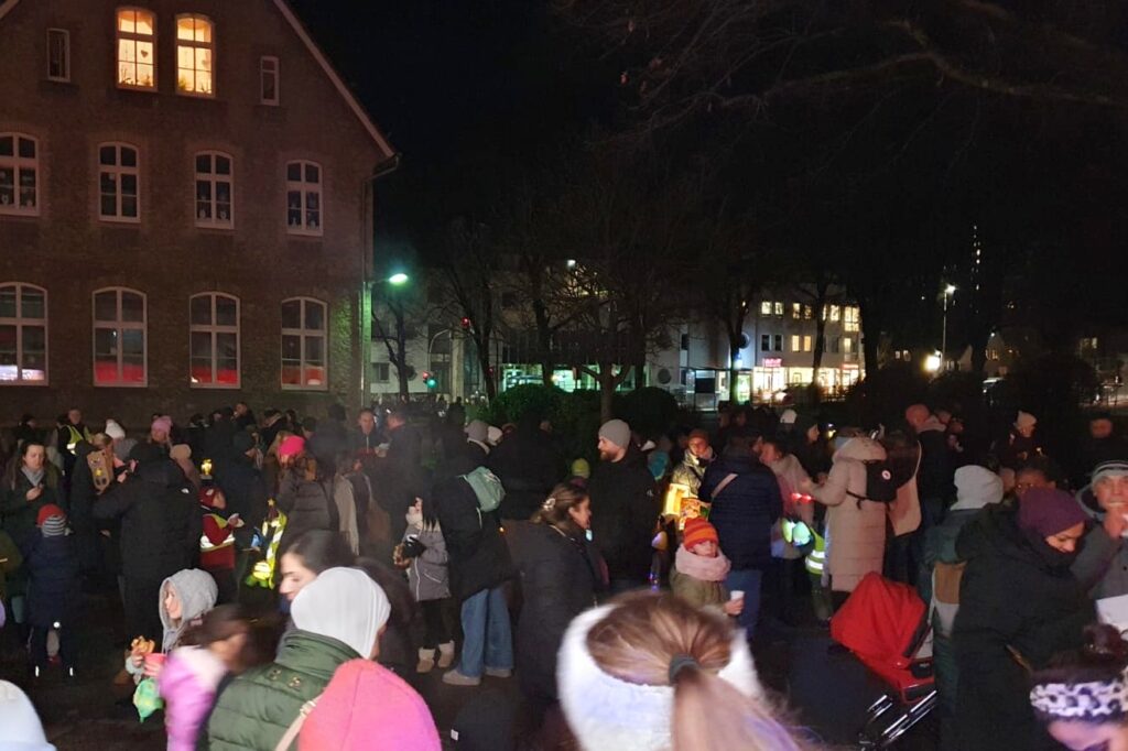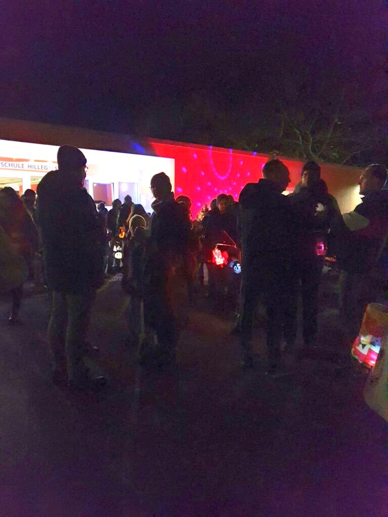 Nachdem sich alle auf dem beleuchteten Schulhof mit dem Lied „Ich geh mit meiner Laterne“ unter Gitarrenbegleitung eingestimmt haben, begann der kleine Umzug durch Hillegossen. Bei einem Zwischenstopp auf einem Spielplatz wurde erneut gemeinsam gesungen. Im Anschluss an den Umzug fanden sich alle wieder auf dem Schulhof zusammen, um sich bei stimmungsvoller Beleuchtung mit Punsch und Brezeln zu stärken und aufzuwärmen.