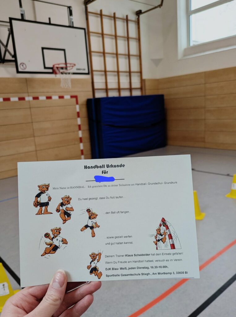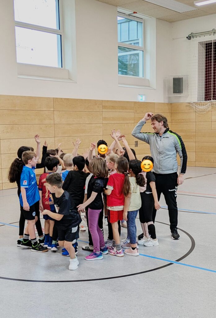 Passend zur Handball-EM 2026 fanden in den letzten Wochen an der Grundschule Hillegossen vier Handballaktionstage für unsere Zweit- und Drittklässler statt. Zwei Handballtrainer des DJK Blau-Weiß in Bielefeld brachten in aufeinander aufbauenden Trainingseinheiten den Kindern die Sportart Handball näher. Zunächst wurden Fang- und Laufübungen gemacht sowie Wurftechniken spielerisch geübt, heute – am letzten Trainingstag – wurde sogar richtig in Teams gespielt. Die Kinder haben in der Zeit tolle Fortschritte gemacht und können diese bei dem Handball-Spielfest am Wochenende nochmals unter Beweis stellen.