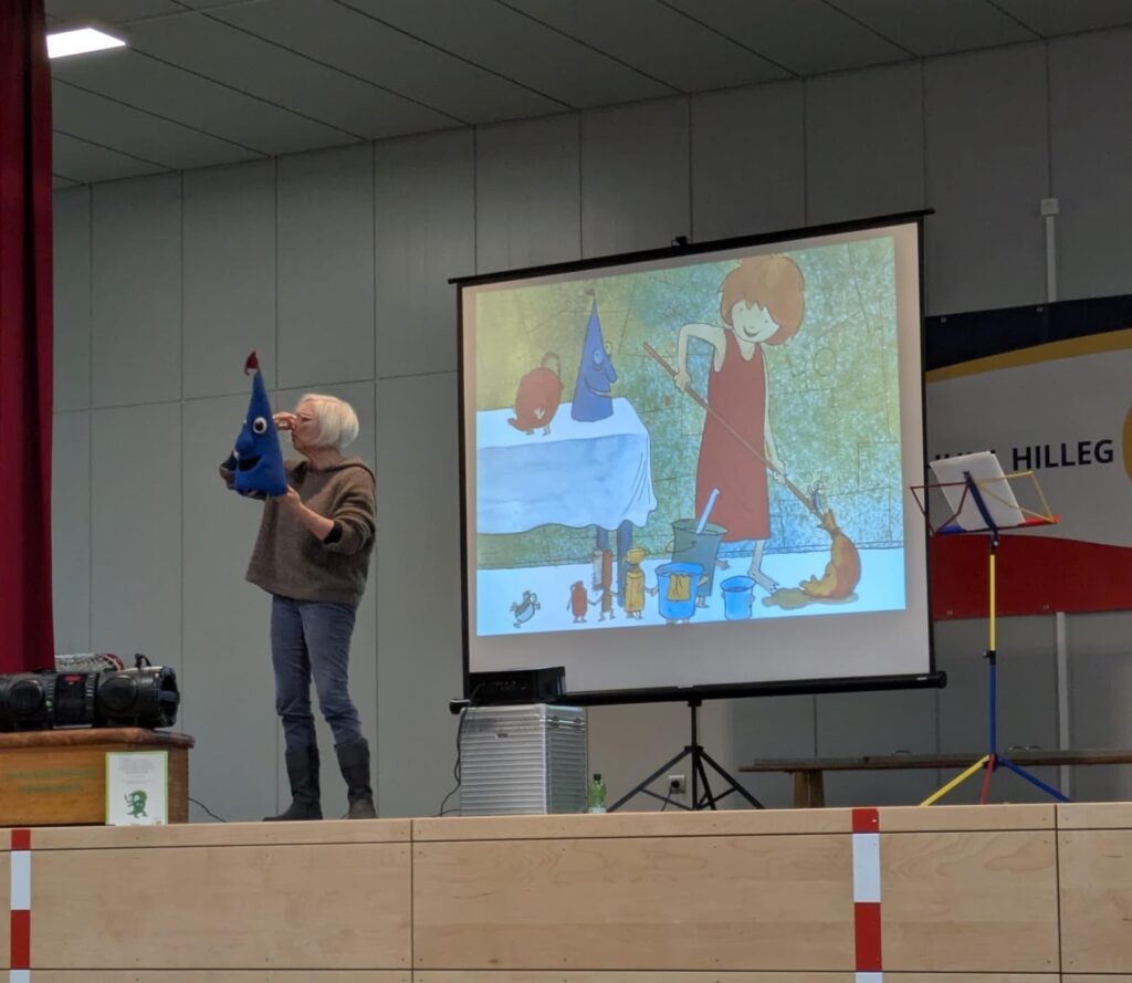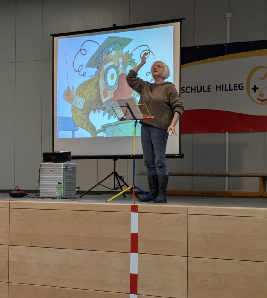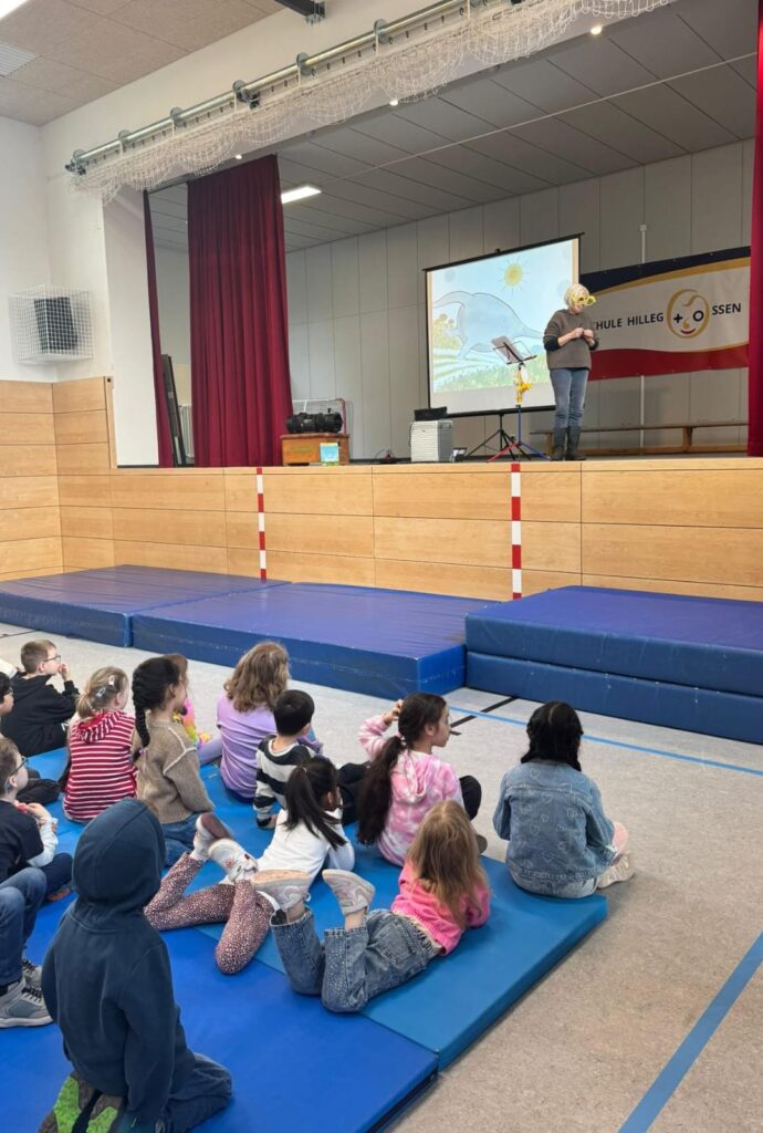 Heute war die Sängerin Patricia Prawit bei uns zu Gast an der Grundschule Hillegossen. In Kinderliedern und -musicals verleiht sie Figuren ihre Stimme, heute animierte sie unsere Schülerinnen und Schüler mit zwei Geschichten und zahlreichen Liedern zum Mitsingen.